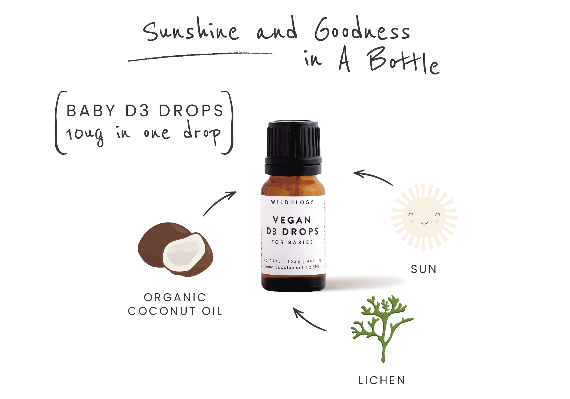 We obsess and care about the quality and type of ingredients that go into these drops. Our drops are made in the UK to the highest standards and all ingredients are traced. without sheep wool cholesterol used in regular Vitamin D3 which is filled with toxic chemicals and extracted from sheep in a cruel way. We don't skim on anything to ensure you have the highest quality product. We would only give to you what we and our babies consume ourselves at Wildology!